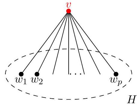 Hence, \(r\) is in a different connected component from at least one of \(p\) or \(q\) — let's say point \(p\) . Then we repeat the same argument on the disk with diameter \(\overline{pr}\) to find a new point \(s\) , non- adjacent to either \(p\) or \(r\) . See the figure below, where the \(X\) 'ed out dashed edges indicate points which are not only non- adjacent but in different connected components.